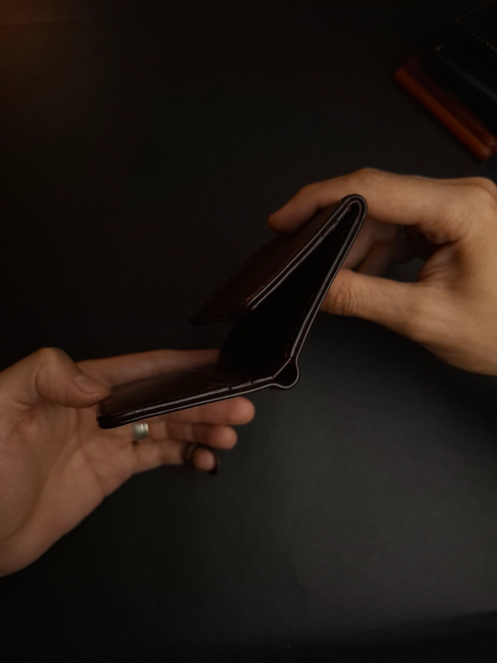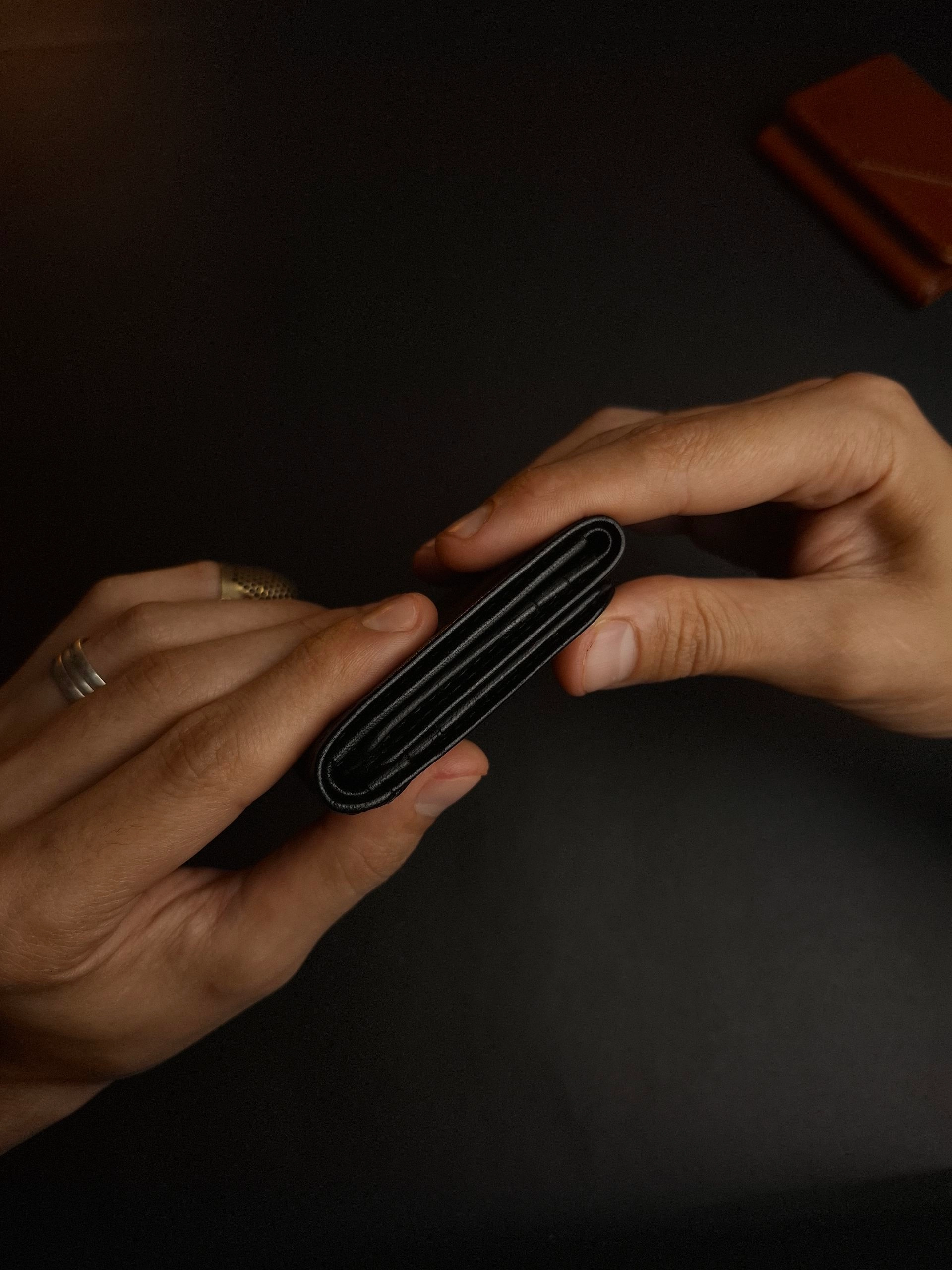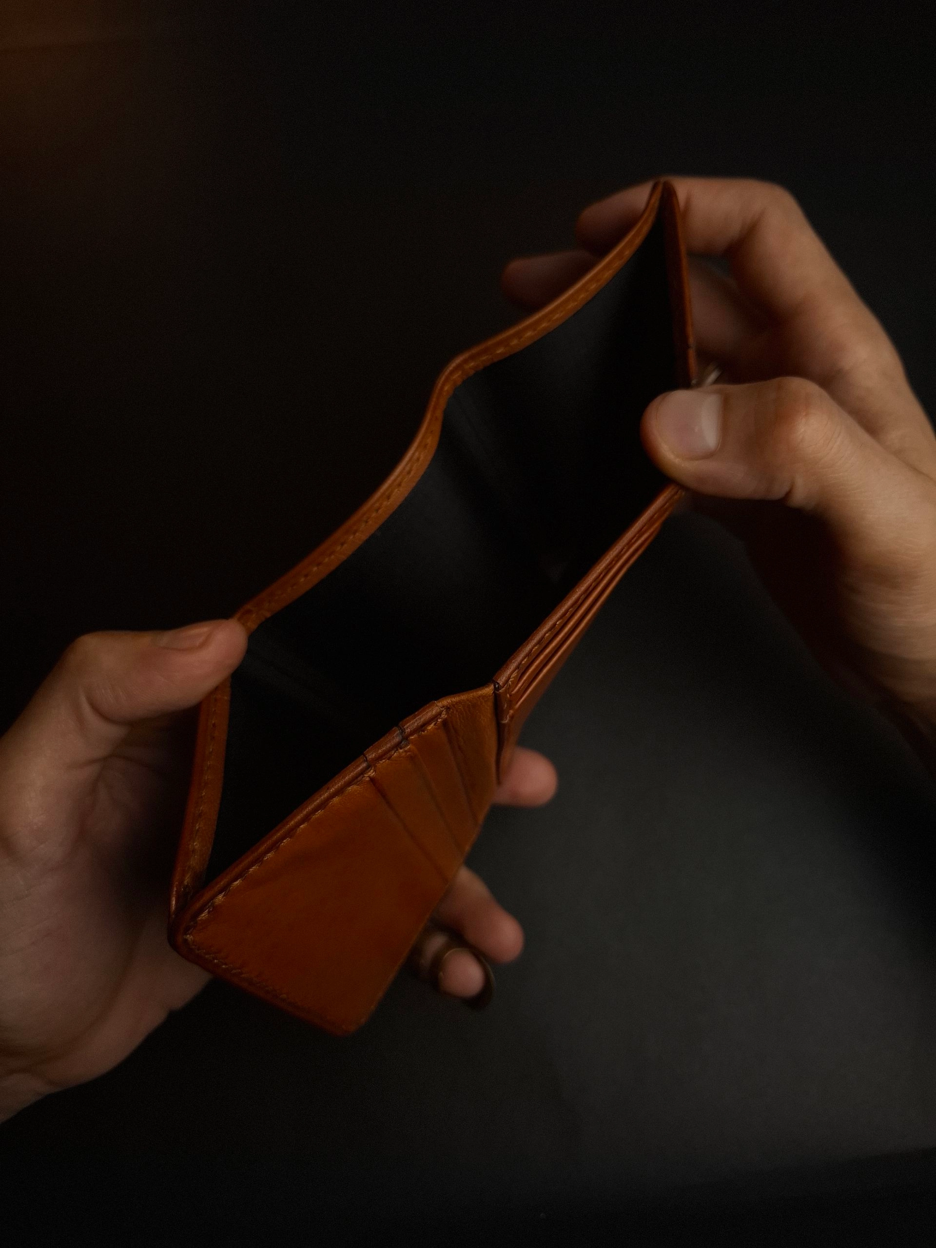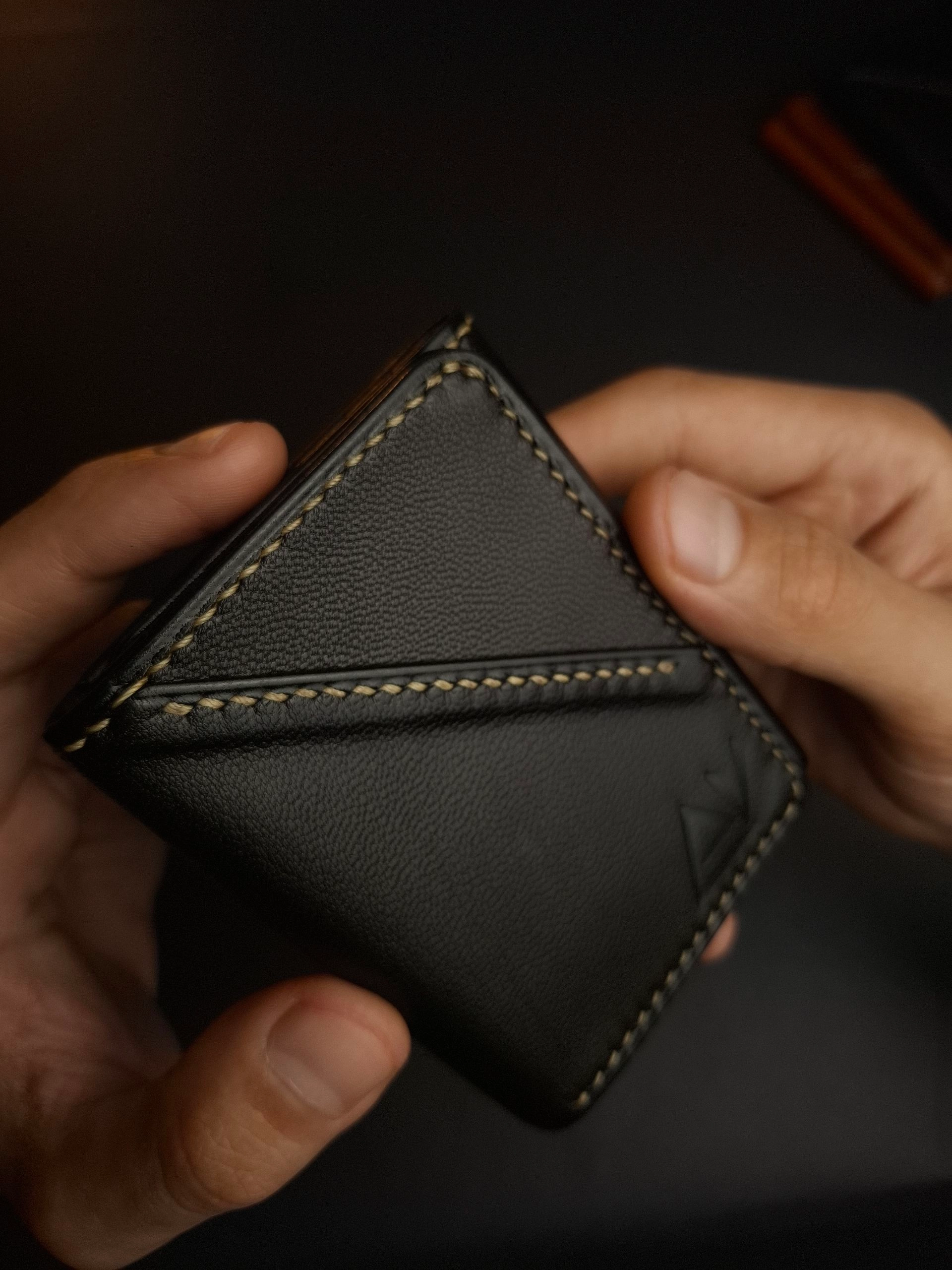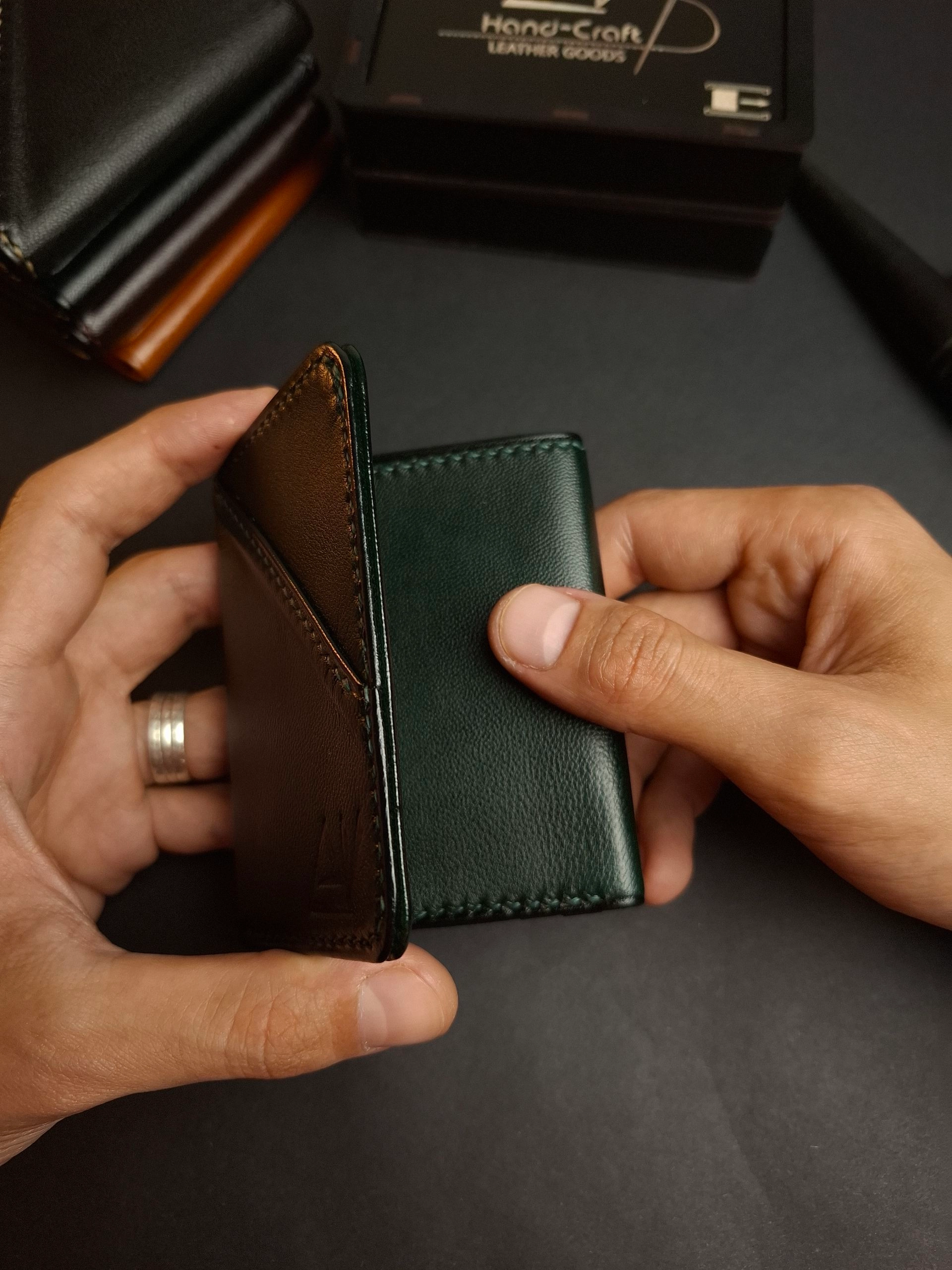 محفظة ثلاثية فخمة من الجلد الطبيعي بصناعة وخياطة يدوية بالكامل . بتقدملك توازن مثالى بين الراحة والعملية .