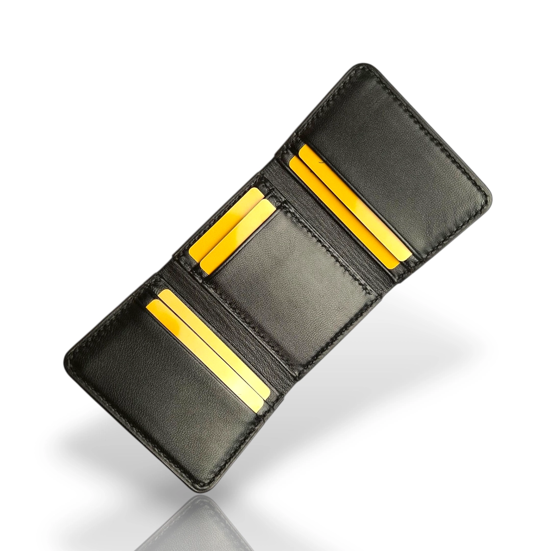 "اشترِ trifold Wallet من الجلد الطبيعي الفاخر. صغيرة الحجم، سهلة في الجيب، واسعة لاستيعاب كل الكروت والنقود، مع خياطة يدوية وحواف ناعمة لمسة فخامة في كل يوم."