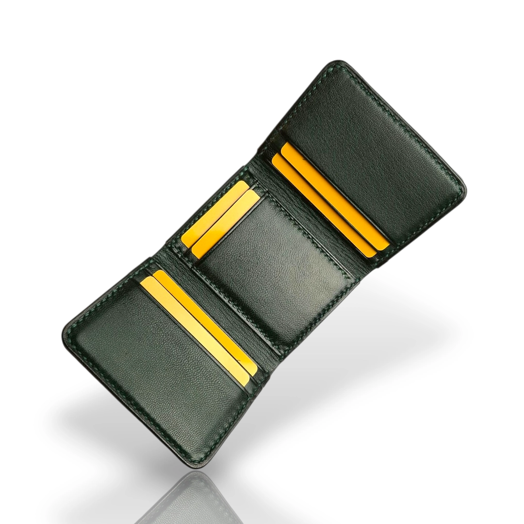 "اشترِ trifold Wallet من الجلد الطبيعي الفاخر. صغيرة الحجم، سهلة في الجيب، واسعة لاستيعاب كل الكروت والنقود، مع خياطة يدوية وحواف ناعمة لمسة فخامة في كل يوم."