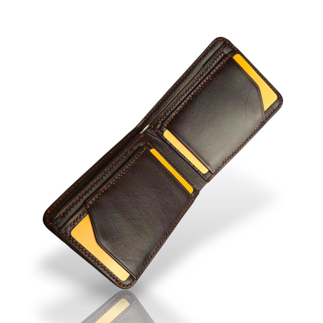 "اشترِ Bifold Wallet من الجلد الطبيعي الفاخر. صغيرة الحجم، سهلة في الجيب، واسعة لاستيعاب كل الكروت والنقود، مع خياطة يدوية وحواف ناعمة لمسة فخامة في كل يوم."